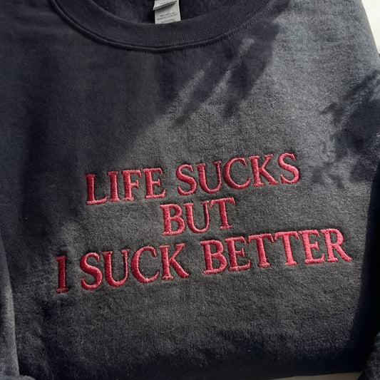 Life Suck But I Suck Better Embroidered Shirt